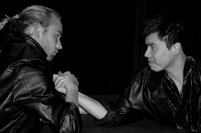 Jord van den Brink en Tri van Dinh speelden in 2004 in mijn regie van Passie van de 15e eeuwse Franse schrijver Arnoul Gréban.